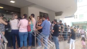 Filas com mais de 350 pessoas desde de as 5 horas da manhã foram registradas em frente a laboratórios na cidade de Sorriso (500 Km de Cuiabá) em busca da