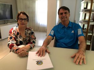 O presidente eleito Jair Bolsonaro (PSL) aceitou a indicação da Frente Parlamentar da Agropecuária e anunciou a deputada federal Tereza