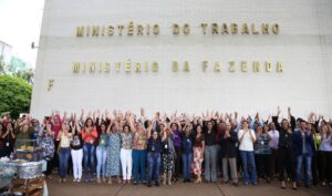 Servidores do Ministério do Trabalho fizeram hoje (8) um abraço simbólico ao redor do edifício principal na Esplanada dos Ministérios. Foi uma reação coletiva ao anúncio do presidente eleito, Jair