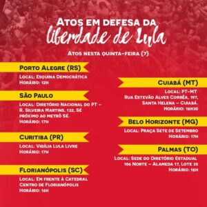 Após o ex-presidente Luiz Inácio Lula da Silva (PT) ser condenado pela segunda vez em ações oriundas da Operação Lava Jato, defensores do petista realizam um ato em prol da