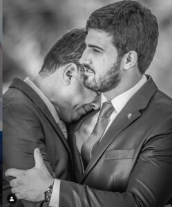 Filho do prefeito de Cuiabá Emanuel Pinheiro (MDB), o deputado federal por Mato Grosso Emanuelzinho Pinheiro (PTB), em uma de
