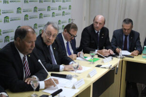 O presidente da Frente Parlamentar da Agropecuária, deputado federal Alceu Moreira (MDB-RS), declarou a posição final da bancada, ao lado do presidente da Confederação de Agricultura e Pecuária no Brasil (CNA),