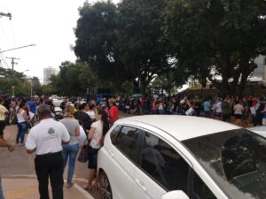 O Palácio Paiaguás, sede do Governo de Mato Grosso, recebeu na tarde desta sexta-feira (7) duas diferentes manifestações. A primeira trata-se dos professores da rede estadual de educação, em greve