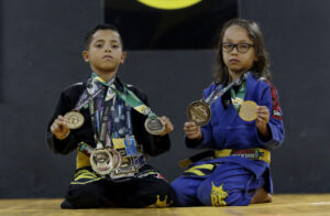 Nove anos de idade, três anos de treinamento de jiu-jitsu e, juntos, mais de 20 medalhas conquistadas. Os cuiabanos Kauã