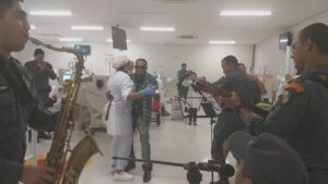 Homens que passam por tratamento de hemodiálise no Centro Nefrológico de Cuiabá ganharam um presente de Dia dos Pais antecipado: a Banda da Polícia Militar de Mato Grosso surpreendeu os