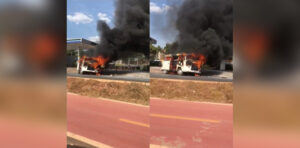 Por pouco uma kombi não pega fogo dentro do posto de gasolina Ecco Mania, na saída para Chapada dos Guimarães. De acordo com funcionário do posto, o veículo estava na