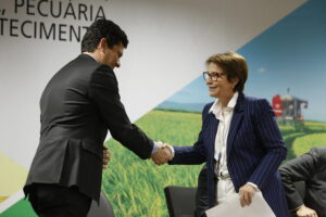 A ministra Tereza Cristina (Agricultura, Pecuária e Abastecimento) e o ministro da Justiça e Segurança Pública, Sergio Moro, assinaram nesta quarta-feira (16) acordo de cooperação técnica com o objetivo de