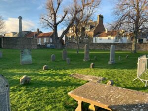 Trabalho num escritório que fica ao lado de uma catedral em ruínas, construída num penhasco que termina no Mar do Norte. No jardim que cerca a catedral dorme um cemitério