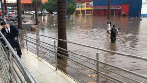 Chuva forte alaga ruas de Cuiabá e veículos boiam em frente ao Shopping Popular – vídeos