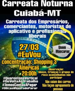 Centenas de cuiabanos aderiram nesta sexta-feira (27) ao movimento de empresários, profissionais liberais e motoristas de aplicativo pela reabertura do