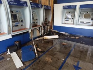 Bandidos colocaram fogo em máquinas de banco 24 horas da Caixa Econômica Federal (CEF) na manhã deste domingo (29) em Cuiabá. Conforme a Polícia Militar, eles usaram uma emulsão líquida