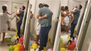 Curado, médico que contraiu Covid-19 é surpreendido com festa pelos filhos