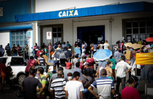 O saque do “coronavoucher” causou fila e aglomeração nas agências da Caixa em todo o país. Em Cuiabá, o banco