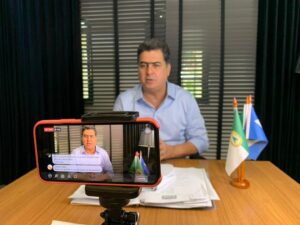Diagnosticado com a COVID-19 na noite de quarta-feira (3), o governador de Mato Grosso Mauro Mendes (DEM) gravou vídeos na