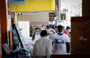 O comércio em Várzea Grande está de portas abertas, mas quem quiser comprar roupas terá que levar para casa sem