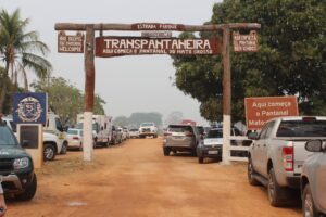Uma placa dá as boas-vindas: “Aqui começa o Pantanal de Mato Grosso”. No Brasil, cerca 65% do bioma fica em