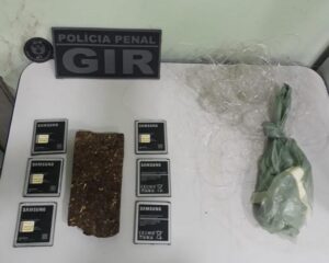 Policiais penais do Grupo de Intervenção Rápida (GIR) que atuam na Penitenciária Central do Estado (PCE) apreenderam seis baterias de celular e um tablete de maconha que seriam transportados pelos