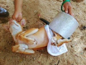 Um cachorro ficou preso em uma panela de pressão, no município de Sobral, no Ceará. O animal precisou do resgate