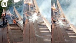 Vândalos queimaram a ponte de madeira na MT-244, que liga as cidades de Rosário do Oeste a Nobres. A estrutura