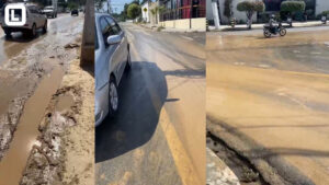 Parte da Avenida Carmindo de Campos, em Cuiabá, foi tomada por lama e poeira nos últimos dias. Comerciantes da região