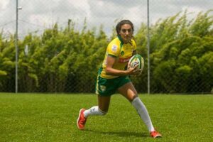 Haline Scatrut não é cuiabana e sim curitibana, porém joga no time Melina Rugby, sediado na capital mato-grossense, e conquistou