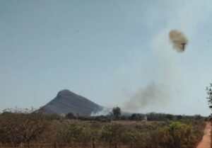 Militares do Corpo de Bombeiros retornaram ao Morro de Santo Antônio, na rodovia Palmiro Paes de Barros, a 27 km de Cuiabá, para combater os focos de incêndio que perduram
