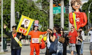 Nove centrais sindicais se manifestaram na frente do Ministério do Trabalho após a pasta divulgar uma nota que proíbe a