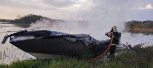 Uma lancha explodiu nesse sábado (24) no Lago Romancini, em Lucas do Rio Verde (330 km de Cuiabá), e três