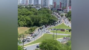 Caminhoneiros fecham a avenida do CPA e se juntam a manifestantes em frente à 13ª Brigada