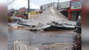 Cuiabá e VG: chuva forte causa destelhamento de empresa e alagamento de ruas