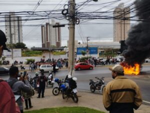 VÍDEO| Motociclistas ateiam fogo em pneus durante protesto em Cuiabá