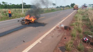 Um homem, ainda não identificado, morreu na manhã de hoje (29), após bater a moto que pilotava de frente com um caminhão na MT-170, em Juína. A moto que a