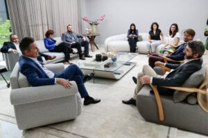 O governador Mauro Mendes recebeu a visita da comitiva da Embaixada da França, hoje (26), no Palácio Paiaguás, em Cuiabá. Durante o encontro, foram discutidas possíveis parcerias nas áreas de