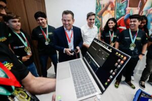 O governador Mauro Mendes recebeu, hoje (05), no Palácio Paiaguás, os estudantes de escolas estaduais de Sinop e Rondonópolis, que foram destaque no campeonato nacional de robótica, em Brasília. Estudantes