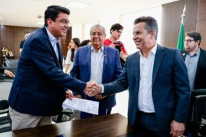 O governador Mauro Mendes assinou um convênio para obras de asfalto novo e recuperação em sete bairros de Várzea Grande. O investimento total é de R$ 20,5 milhões, sendo R$