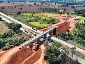 Quem visitar a região sul de Mato Grosso já pode ver o andamento acelerado das obras de implantação da Ferrovia