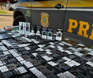 A Polícia Rodoviária Federal (PRF) apreendeu 217 dispositivos eletrônicos de fumar, em Rondonópolis (220 km de Cuiabá). A carga estava