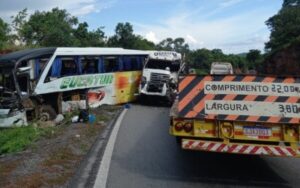 Um acidente entre um ônibus de viagem e uma carreta-prancha deixou 17 pessoas feridas, duas delas, gravemente. O fato foi registrado na BR-070, na serra do Mangaval, em Cáceres, nesse