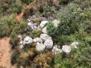 Diversos galões de agrotóxicos armazenados e descartados de forma irregular em uma propriedade rural no município de Bom Jesus do