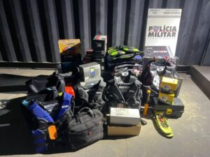 Equipes do Batalhão de Rondas Ostensivas Tático Móvel (Rotam) localizaram e recuperaram grande quantidade de materiais furtados de uma empresa de produtos náuticos, na noite desta quinta-feira (11.9), em Cuiabá.