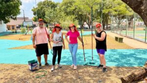 A primeira-dama e vereadora de Cuiabá, Samantha Iris, neste final de semana o segundo mutirão de pintura e melhorias em quadras poliesportivas da capital. A ação contou com o apoio