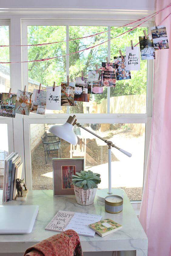 A ideia aqui é fazer um varal de recordações. Uma surpresa cheia de significado e que vai custar pouco. Basta um fio, alguns prendedores, um pouco de criatividade e decoração.
