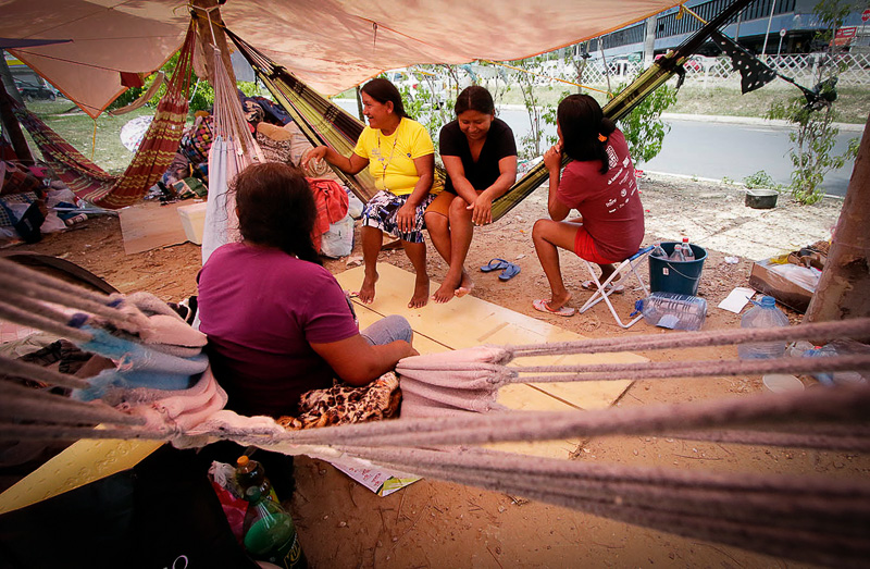 Vinte indígenas venezuelanos da etnia Warao se instalaram desde 1º de janeiro em um dos canteiros do viaduto de acesso a rodoviária de Cuiabá. Eles estão em um acampamento improvisado, onde a cobertura é feita por lonas a partir da sustentação de caibros.
