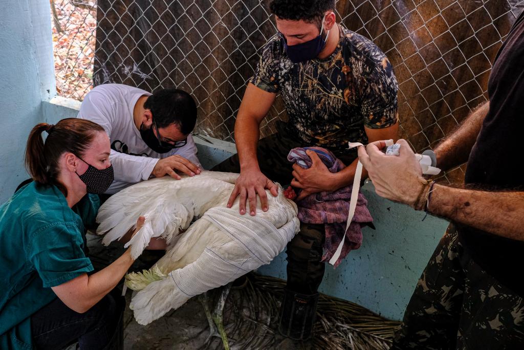 Já estão sendo tratados no local, entre outros animais, um tuiuiú encontrado próximo a uma pousada com fratura em uma das asas. Uma maritaca, com dificuldades para voar, e um pequeno roedor, com queimaduras nas patas, também foram resgatados.