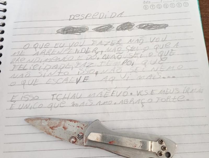 Após ser apreendido, o adolescente disse à PM que vinha sendo alvo de bullying e “estava cansado”. No caderno dele, a polícia encontrou uma carta de despedida direcionada à mãe, avó e irmãos. “Felicidade, faz tempo que não sinto isso”, escreveu o menor.