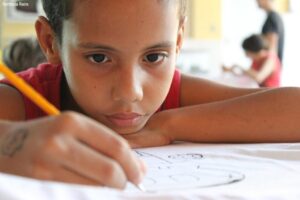 “Durante a oficina, cada voluntário fica com uma criança. Eles conversam, e as crianças são estimuladas a pensarem sobre o que sonham em se tornar, profissionalmente, como elas podem mudar o mundo delas. Daí, eu faço um desenho personalizado com a escolha delas, e então, elas pintam. Enquanto vão pintando, vão pensando sobre isso. É uma forma de estimulá-las a sonhar”.