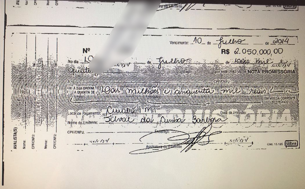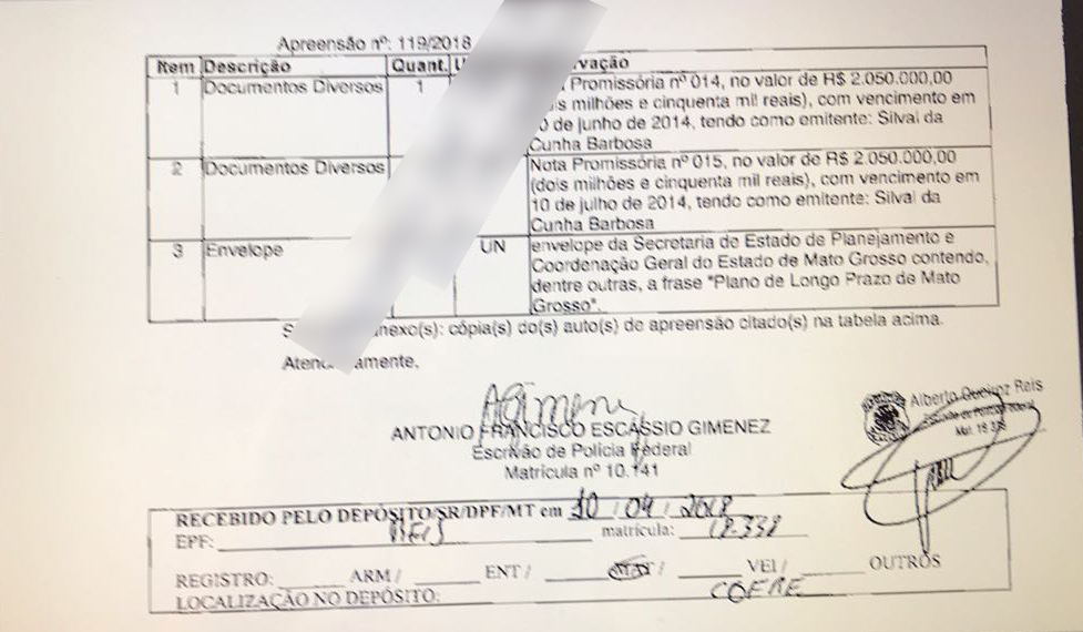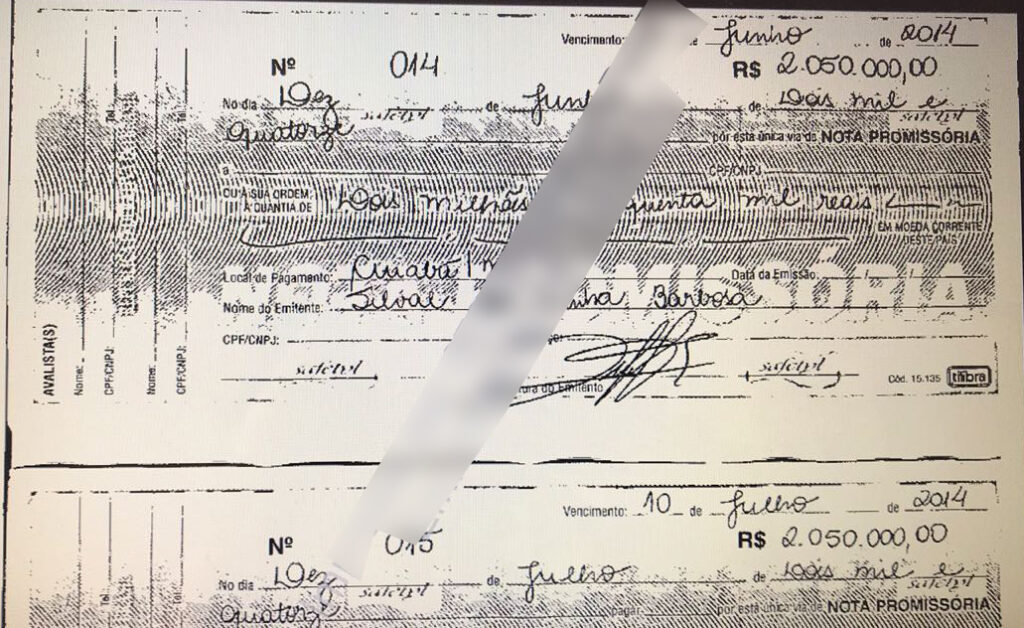 Foram encontradas duas notas no valor de R$ 2,05 milhões cada, uma com vencimento em junho de 2014 e a outra em julho do mesmo ano. Ambas levam a assinatura de Silval Barbosa.