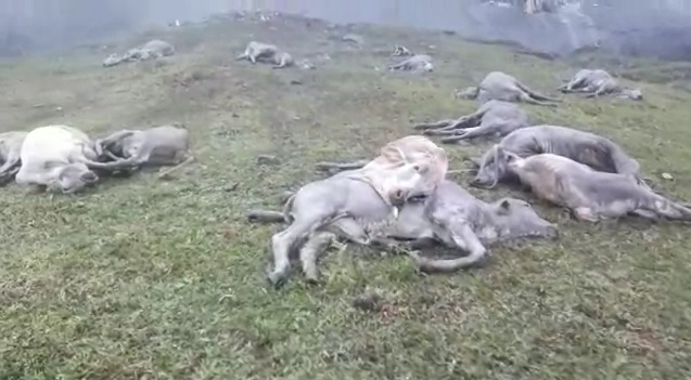 Segundo reportagem produzida pela filial da Rede Globo local, os animais estavam pastando perto de um despenhadeiro de 120 metros de altura e, por terem chegado muito próximos à borda, um deles despencou, e foi seguido pelos outros. Apenas um, que não seguiu o rebanho para a montanha, continua vivo.