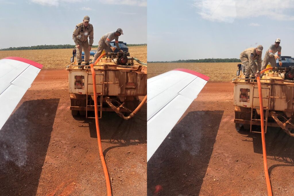 Na manhã deste sábado (24) as equipes terrestres chegaram a uma fazenda próxima ao incêndio, que se tornou um apoio de abastecimento para a aeronave.