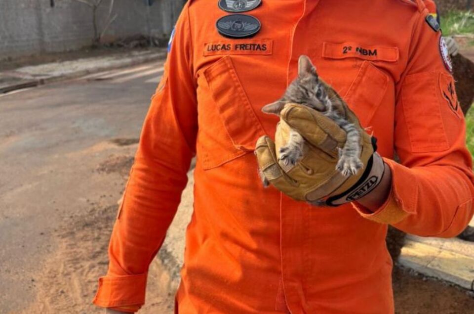 O Corpo de Bombeiros Militar de Mato Grosso (CBMMT) resgatou nesta terça-feira (28.10) um filhote de gato que ficou preso em um bueiro na Avenida Hélio Kolsent, em Confresa (a 1006 km de Cuiabá).